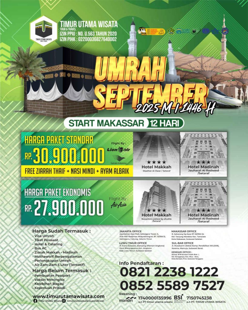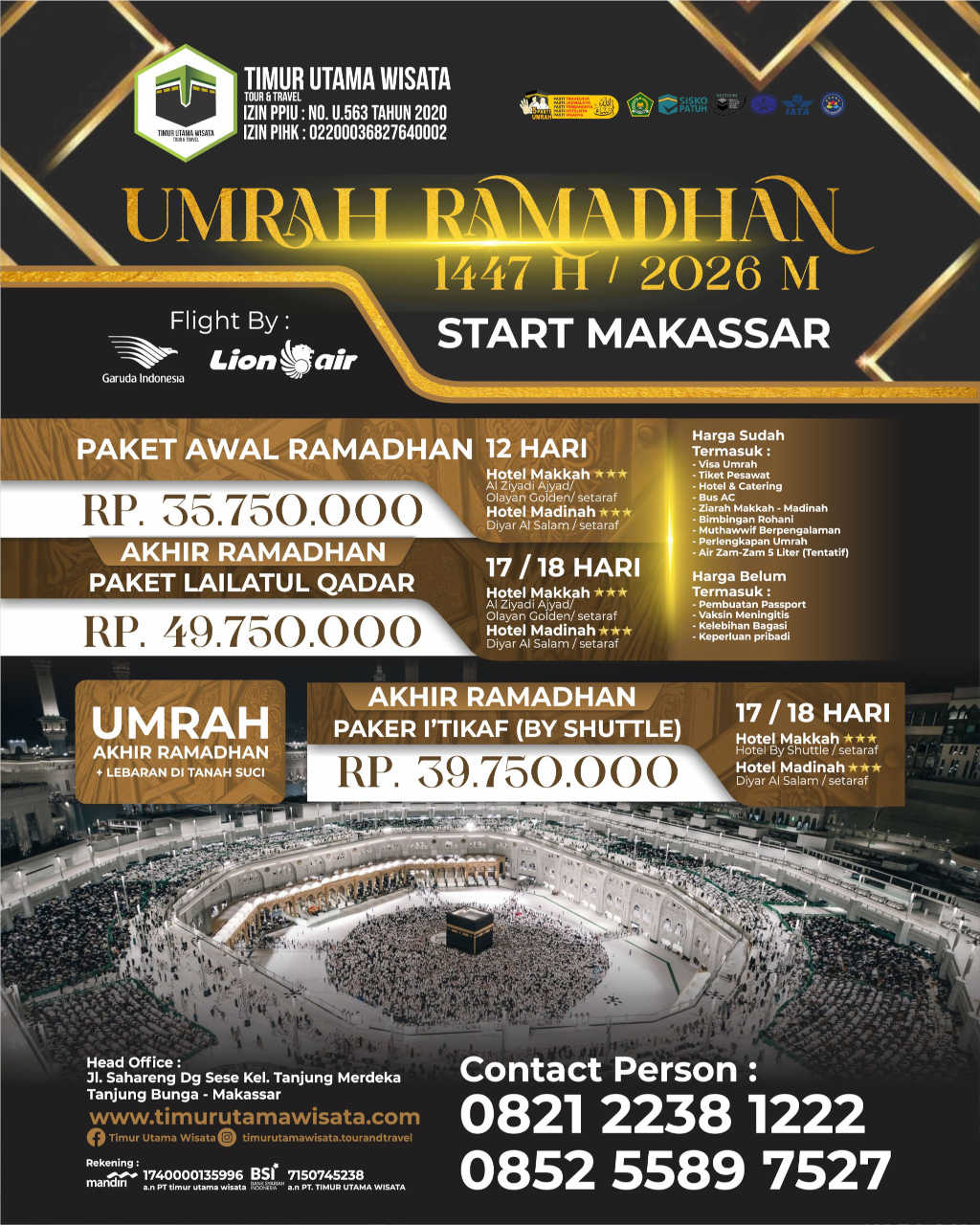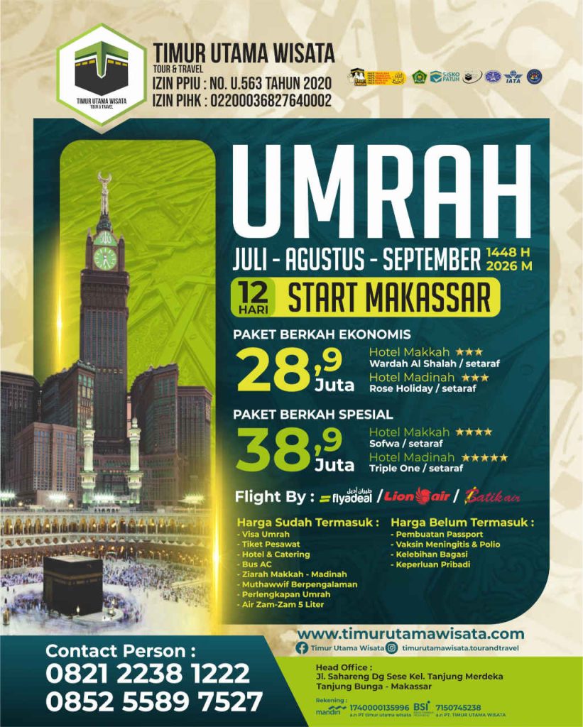 Menyikapi ragam kebutuhan dan keinginan ummat muslim di Indonesia, maka PT. Timur Utama Sejahtera Tour & Travel menawarkan paket-paket pilihan kepada calon jamaah sebagai berikut