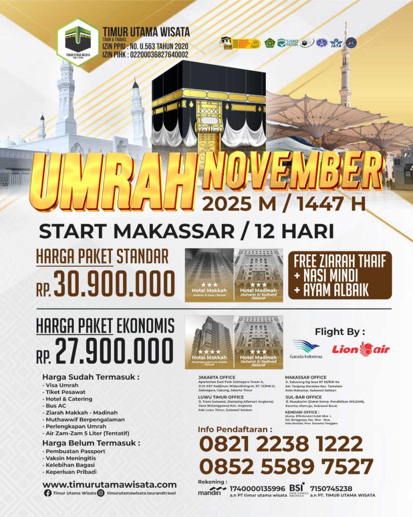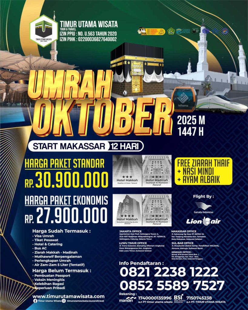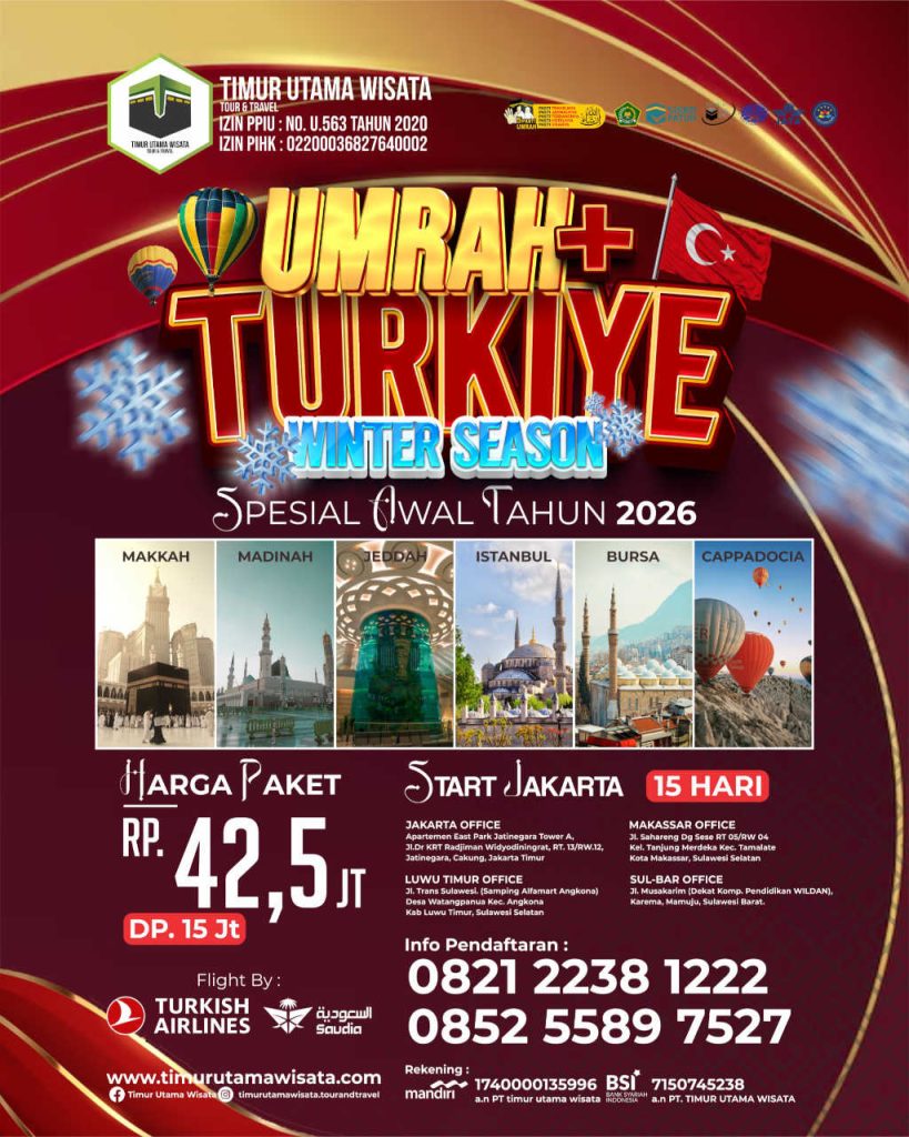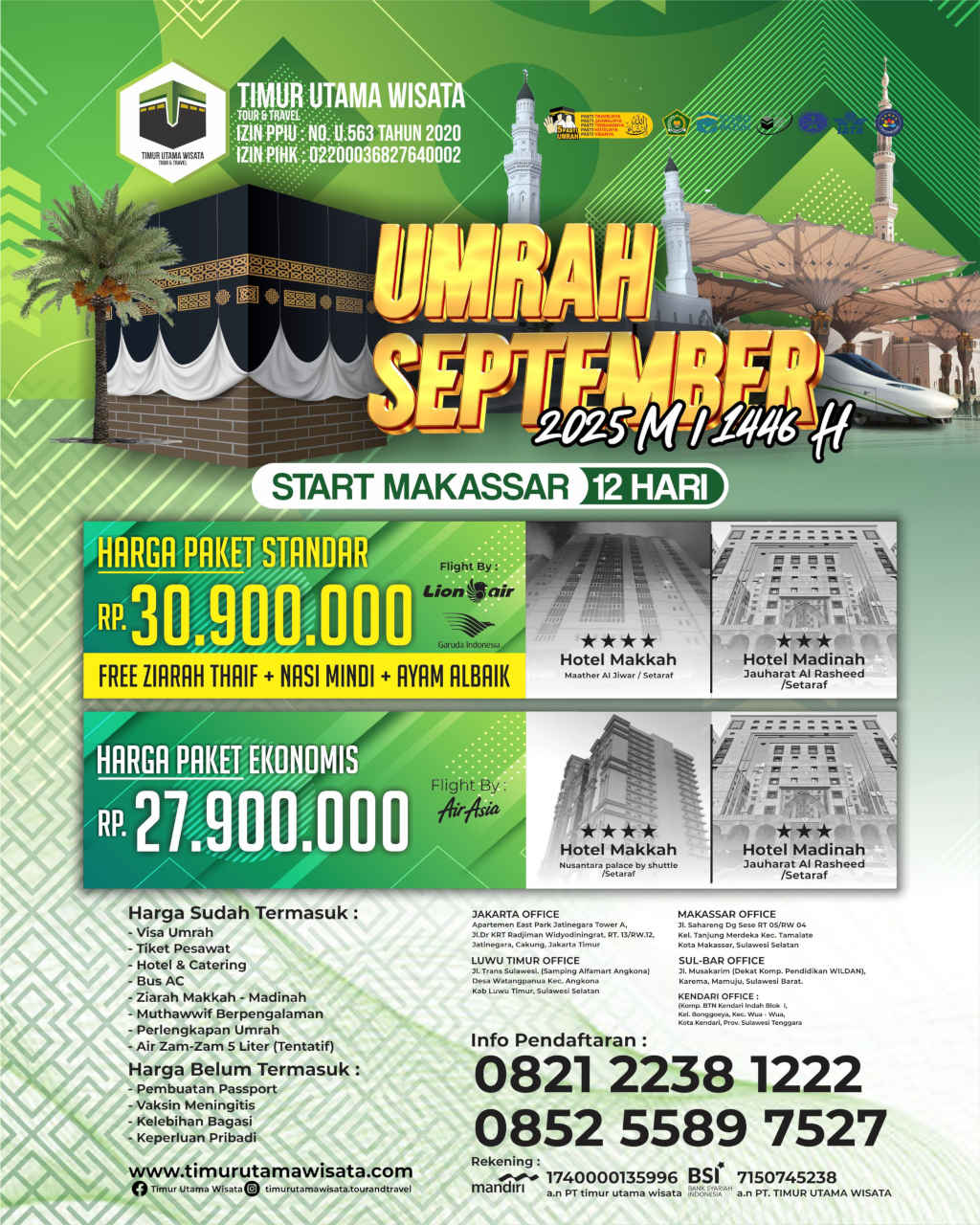 Menyikapi ragam kebutuhan dan keinginan ummat muslim di Indonesia, maka PT. Timur Utama Sejahtera Tour & Travel menawarkan paket-paket pilihan kepada calon jamaah sebagai berikut